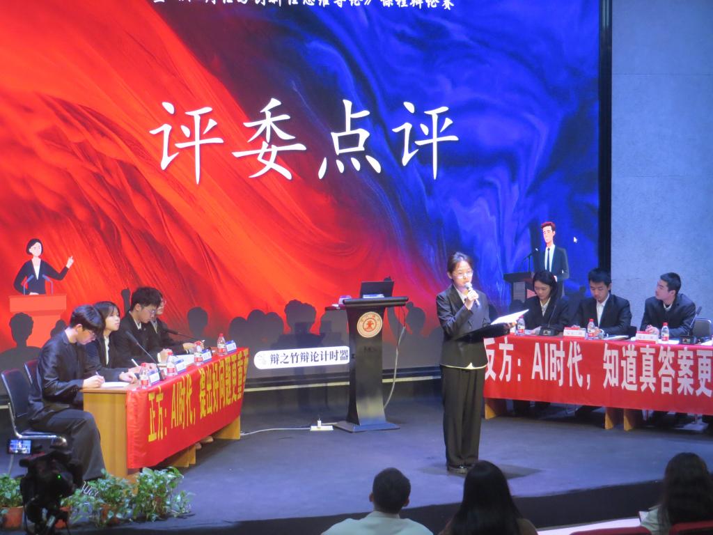 王伟对两场辩论进行了综合点评,她结合“批判性与创新性思维导论”课程的发展历程、赛场和互动环节同学们的表现,强调了批判性与创新性思维能力培养的重要性,以及辩论赛直播这种方式对学生的挑战和对以高阶思维为核心的综合能力的培养,充分肯定了同学们通过学习取得的进步。