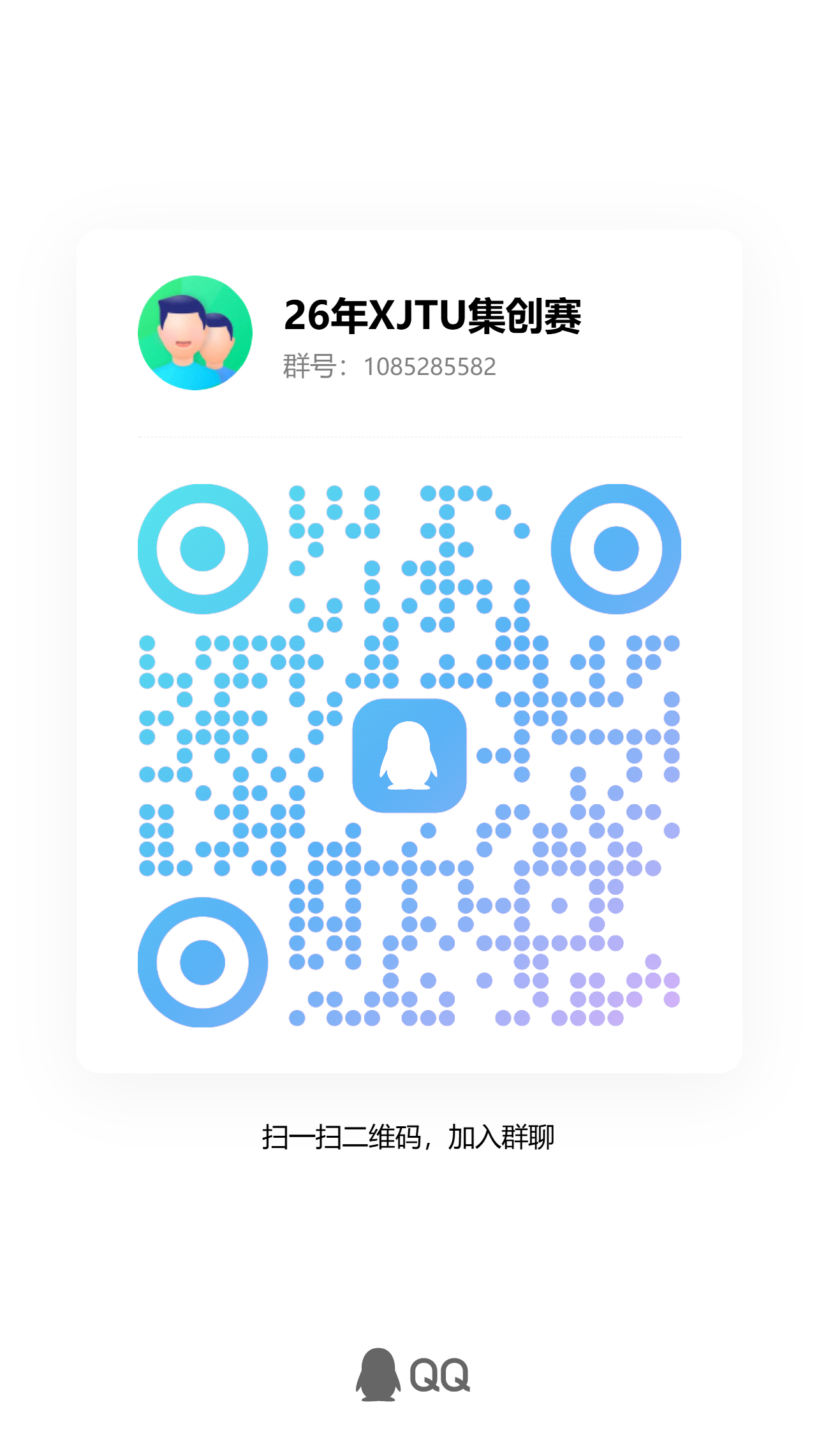 注意2:请各位报名参赛的同学扫码或者搜索群号(QQ群号:1085285582)加入“26年XJTU集创赛”QQ群(二维码如下图所示)